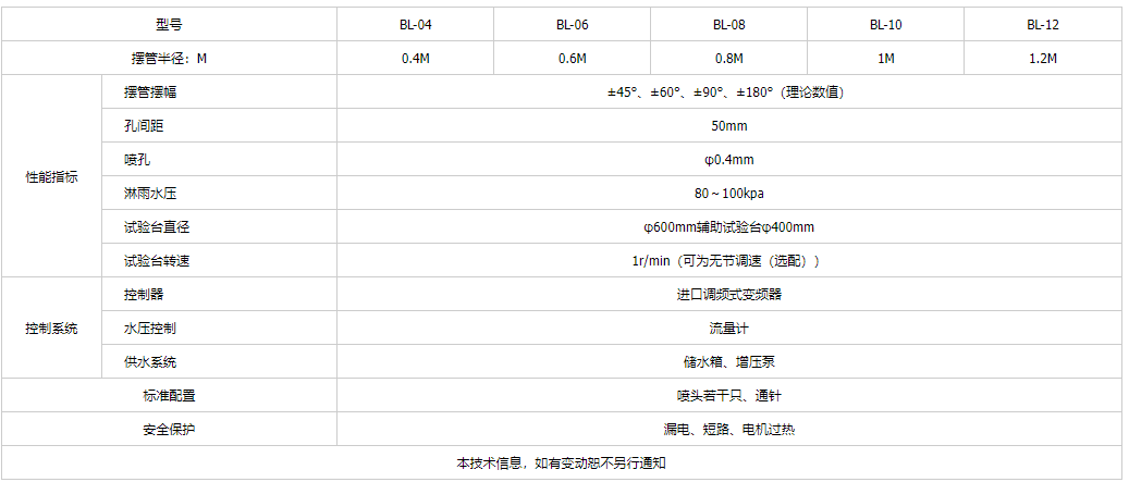 產(chǎn)品名稱:擺管淋雨試驗裝置