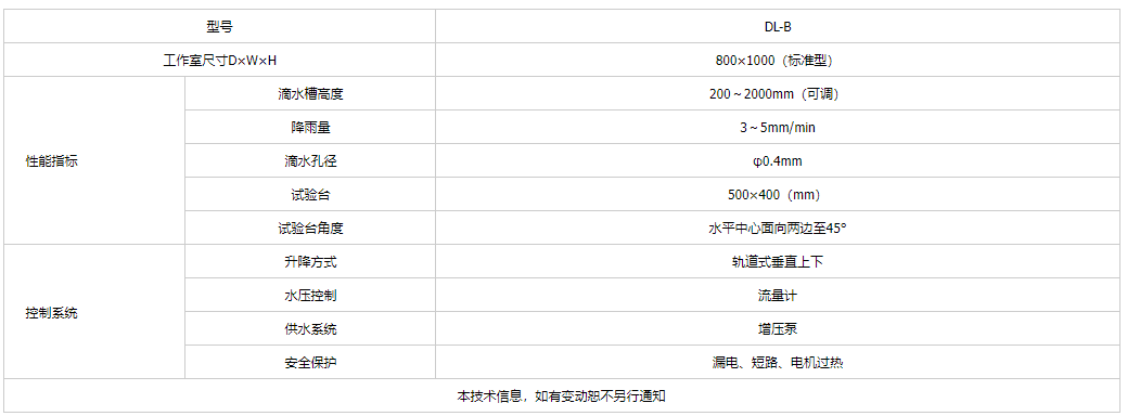 產(chǎn)品簡介:滴水試驗裝置/滴水試驗箱(Drip box) , 滴水試驗裝置適用于外部照明和信號裝置及汽車燈具外殼防護。箱體結(jié)構(gòu):固定立柱,柱型升降導(dǎo)軌,滴水箱,水位調(diào)節(jié)供水箱,自動升降機,流量計,濾紙,可調(diào)角度工作臺,電器控制箱等組成。