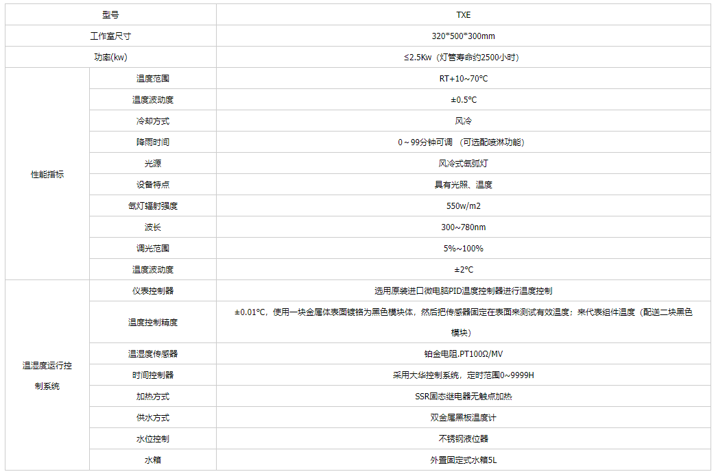 臺式氙燈老化試驗箱選用原裝進口微電腦PID溫度控制器進行溫度控制 精度:0.1℃(顯示范圍); 解析度:0.1℃; 感溫傳感器:PT100鉑電阻測試器; 控制方式:熱平衡調(diào)溫方式。
