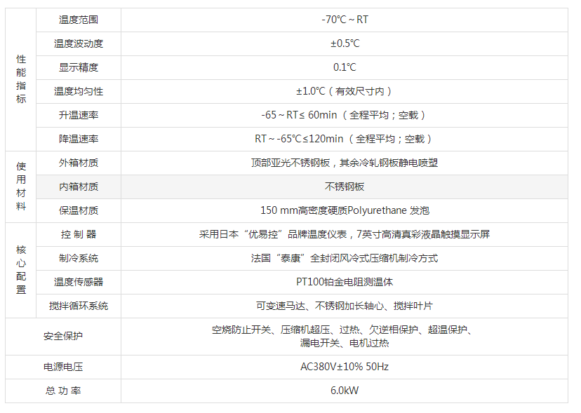 | 降溫速率 | RT~-65℃≤120min (全程平均;空載) | |