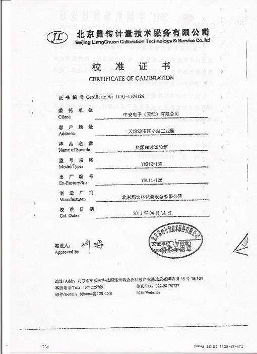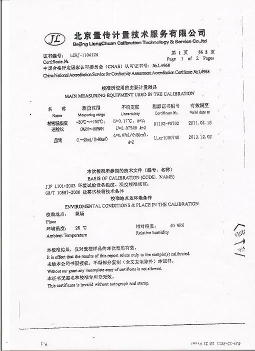>>鹽霧腐蝕試驗(yàn)箱校準(zhǔn)證書(shū)-北京量傳計(jì)量-中安電子