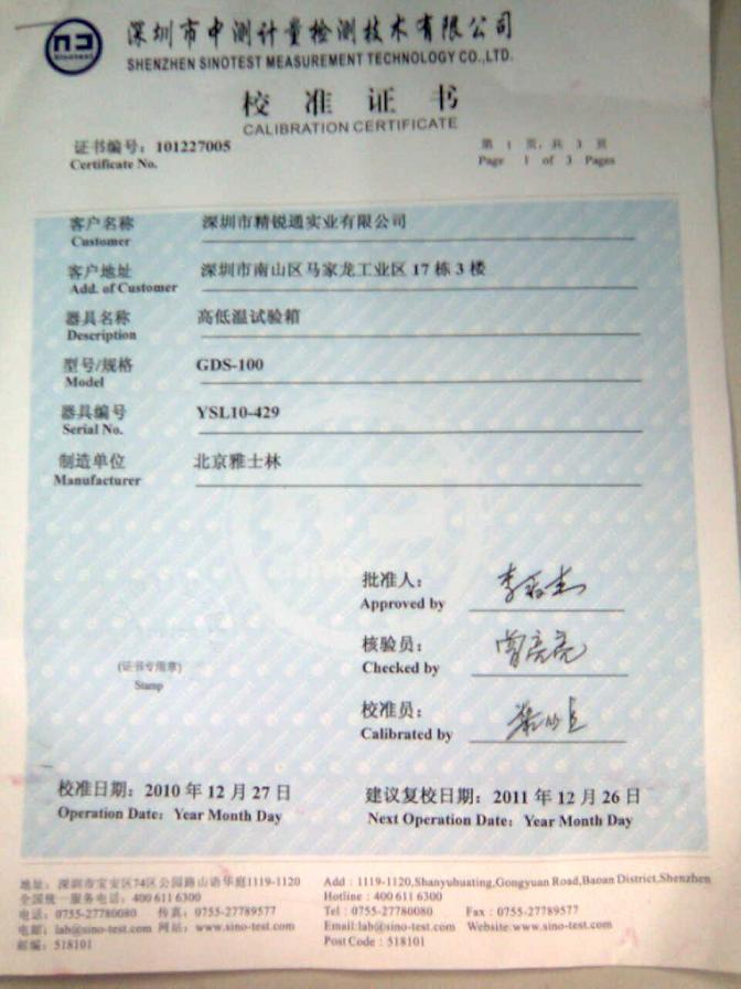 ·高低溫濕熱試驗(yàn)箱校準(zhǔn)證書(shū)-深圳中測(cè)計(jì)量-深圳精銳通