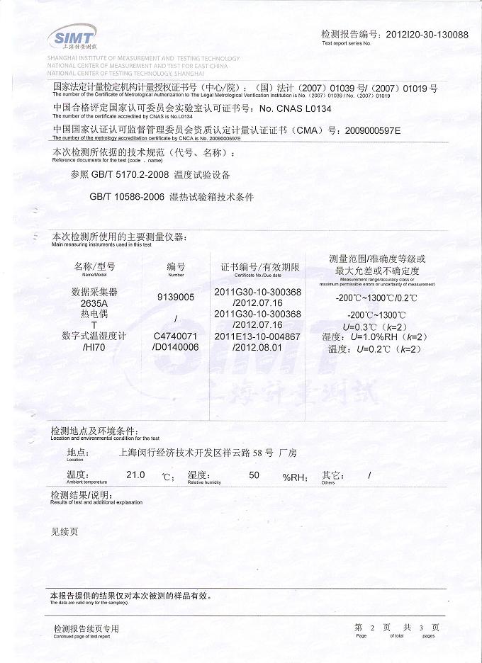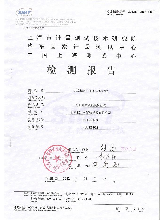 >>高低溫交變濕熱試驗箱檢測報告-上海計量院-北京橡膠院