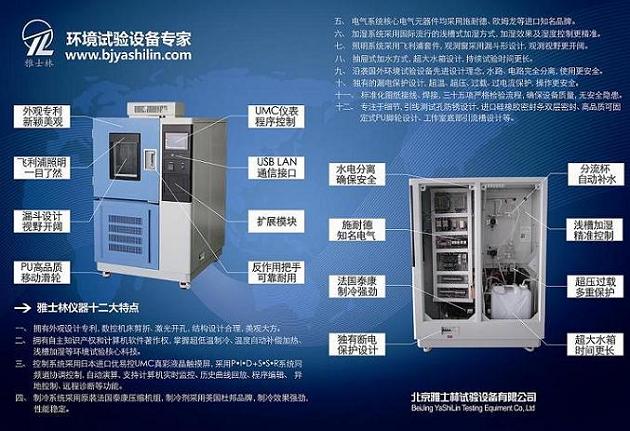 寶劍鋒從磨礪出,梅花香自苦寒來(lái)。雅士林儀器持續(xù)創(chuàng)新,開(kāi)發(fā)最前沿的測(cè)試技術(shù),使雅士林的產(chǎn)品肯有更加大的生命力。雅士林儀器定位于中高端客戶(hù)群,高品質(zhì)、高性能高低溫交變濕熱試驗(yàn)箱系列的產(chǎn)品特點(diǎn): 1、擁有外觀設(shè)計(jì)專(zhuān)利,數(shù)控機(jī)床剪折、激光開(kāi)孔,結(jié)構(gòu)設(shè)計(jì)合理,新穎美觀。 2、擁有自主知識(shí)產(chǎn)權(quán)和計(jì)算機(jī)軟件著作權(quán),掌握超低溫制冷、溫度自動(dòng)補(bǔ)償加熱、淺槽加濕等環(huán)境試驗(yàn)核心科技。 3、控制系統(tǒng)采用日本進(jìn)口優(yōu)易控UMC系列7英寸高清真彩液晶觸摸顯示屏,溫度控制采用P•I•D+S•S•R系統(tǒng)同頻道協(xié)調(diào)控制,自動(dòng)演算的功能,支持電腦實(shí)時(shí)監(jiān)控、歷史曲線回放、程序編輯、遠(yuǎn)程診斷等功能。 4、制冷系統(tǒng)采用原裝法國(guó)泰康壓縮機(jī)組,制冷劑采用美國(guó)杜邦品牌,制冷效果強(qiáng)勁,性能穩(wěn)定。 5、電氣系統(tǒng)核心電氣元器件均采用施耐德、歐姆龍等進(jìn)口知名品牌。 6、加濕系統(tǒng)采用國(guó)際流行的淺槽式加濕方式,加濕效果及濕度控制更精準(zhǔn)。 7、照明系統(tǒng)采用飛利浦套件,觀測(cè)窗采用漏斗形設(shè)計(jì),觀測(cè)視野更開(kāi)闊。 8、抽屜式加水方式,超大水箱設(shè)計(jì),持續(xù)試驗(yàn)時(shí)間更長(zhǎng)。 9、沿襲國(guó)外環(huán)境試驗(yàn)設(shè)備先進(jìn)設(shè)計(jì)理念,水路、電路完全分離,使用更安全。 10、獨(dú)有的漏電保護(hù)設(shè)計(jì),超溫、超壓、過(guò)載、過(guò)電流保護(hù),操作更安全。 11、標(biāo)準(zhǔn)化圖紙接線、焊接,三十五項(xiàng)嚴(yán)格檢驗(yàn)流程,確保設(shè)備質(zhì)量,無(wú)安全隱患。 12、專(zhuān)注于細(xì)節(jié),引線測(cè)試孔防銹設(shè)計(jì)、進(jìn)口硅橡膠密封條雙層密封、高品質(zhì)可固定式PU腳輪設(shè)計(jì)、工作室底部引流槽設(shè)計(jì)等。 全國(guó)免費(fèi)服務(wù)電話:4006 400 998 |